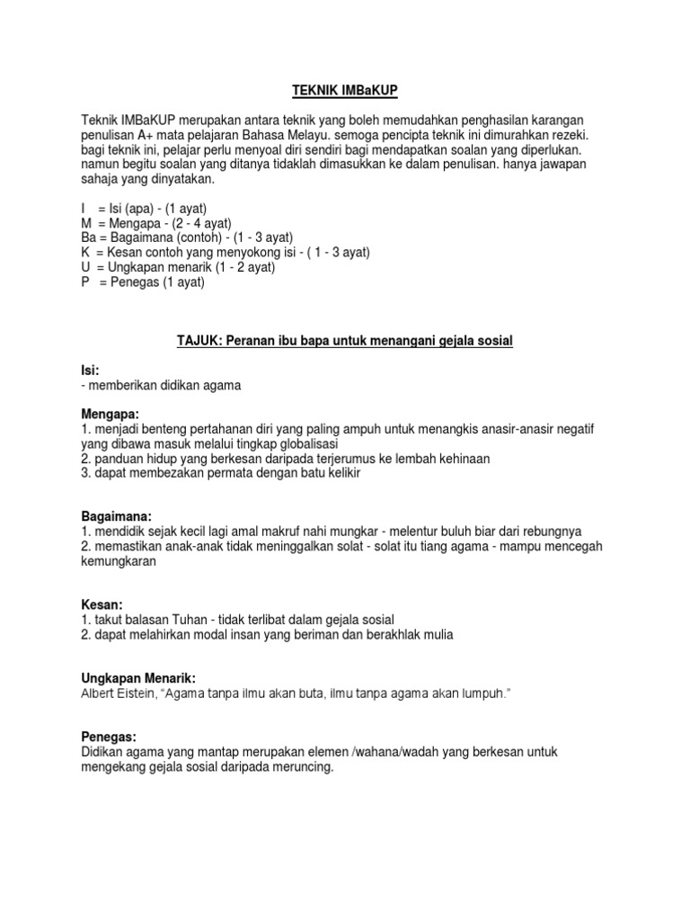 Contoh Karangan Spm Kaedah Imbakup Sosial By Kur_307Amiah 08 Aug, 2022 Post a Comment Teknik Imbakup Pdf Teknik Imbakup Dalam Karangan Pdf Teknik Imbakup Pdf Huraian Isi Karangan Dengan Menggunakan Teknik Imbakup Youtube Contoh Karangan Spm Kaedah Imbakup Sosial Juliblogry Share No comments for "Contoh Karangan Spm Kaedah Imbakup Sosial"